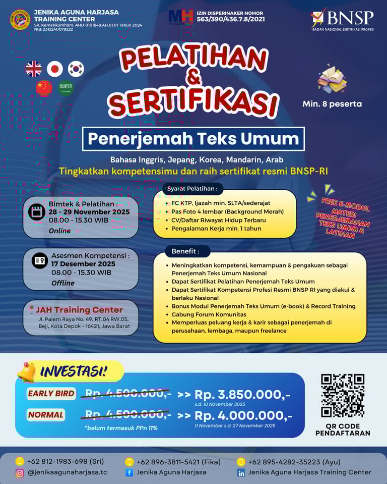 📚 Pelatihan & Sertifikasi Skema Penerjemah Teks Umum