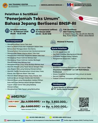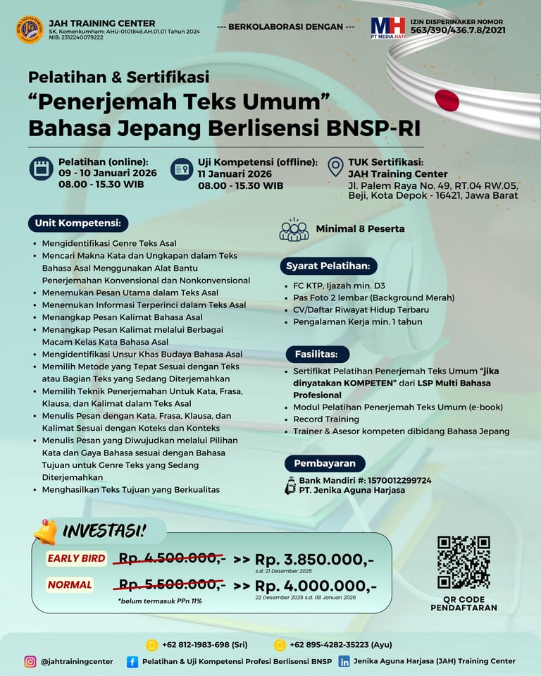 📚 Pelatihan & Sertifikasi Skema Penerjemah Teks Umum Bahasa Jepang