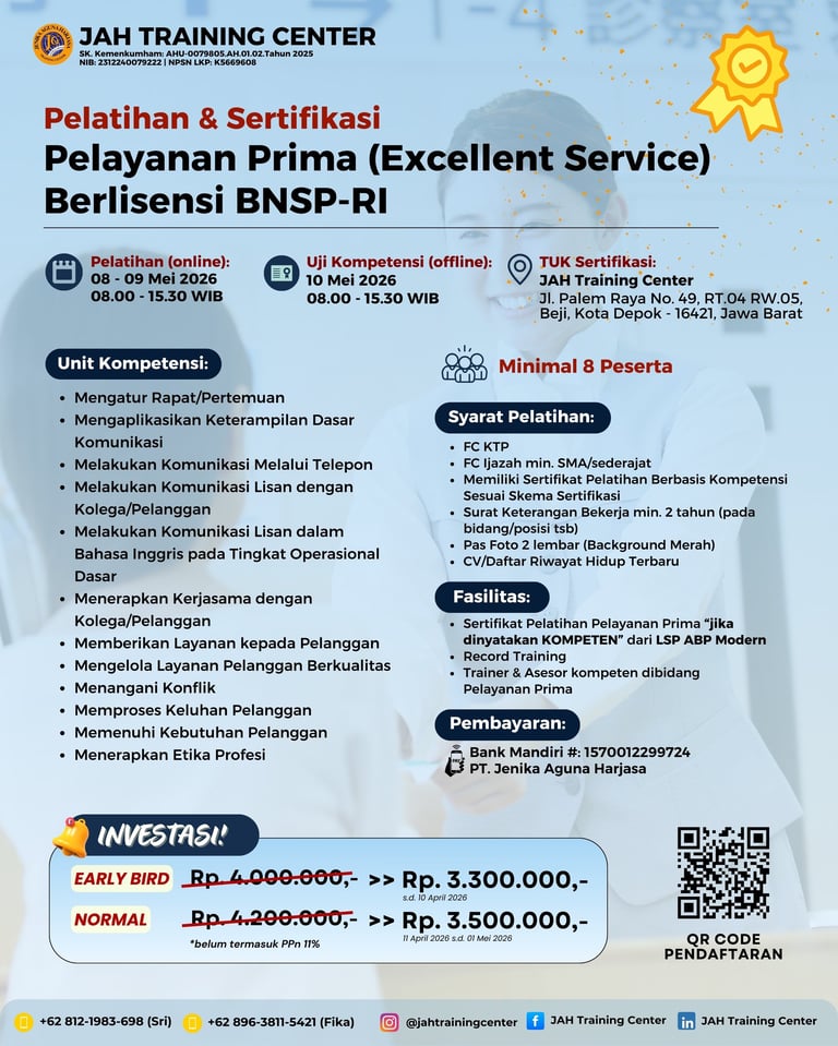 Sertifikasi: Offline di Training Office JAH Training Center