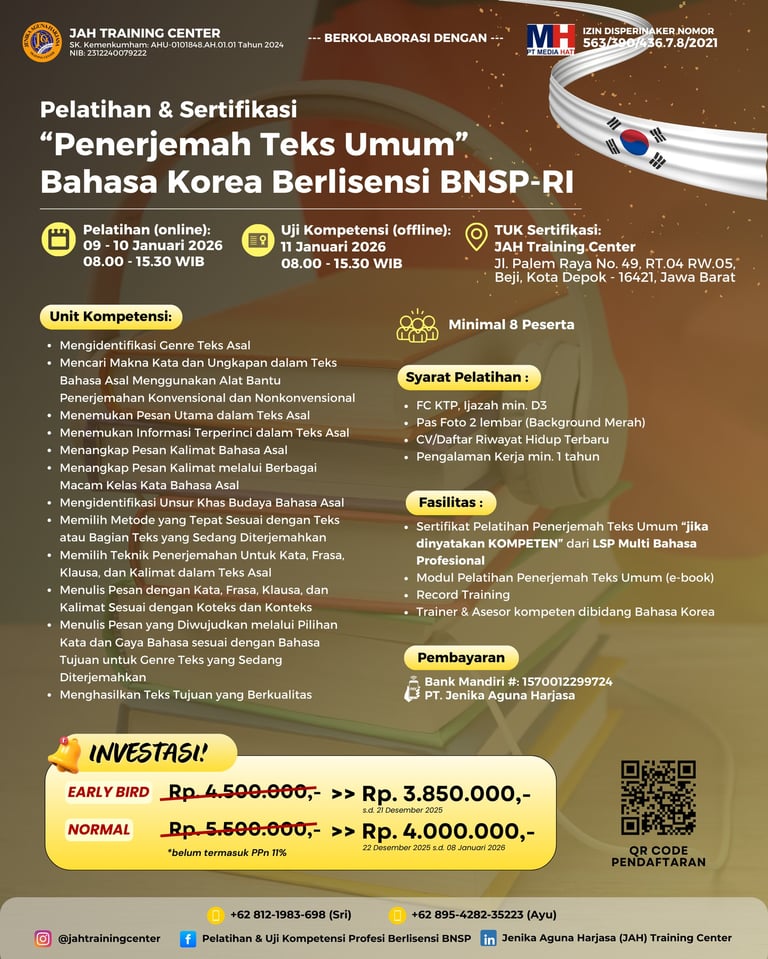 📚 Pelatihan & Sertifikasi Skema Penerjemah Teks Umum Bahasa Korea