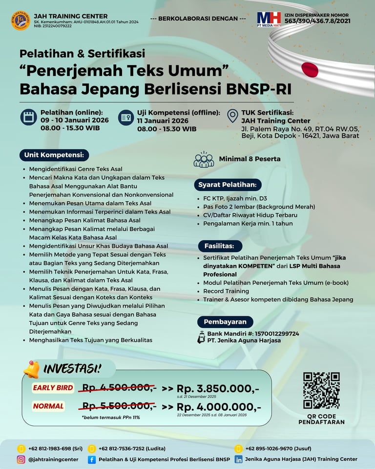 📚✨ Ikuti Pelatihan & Sertifikasi Profesi skema Penerjemah Teks Umum - Bahasa Korea berlisensi resmi dari BNSP RI.