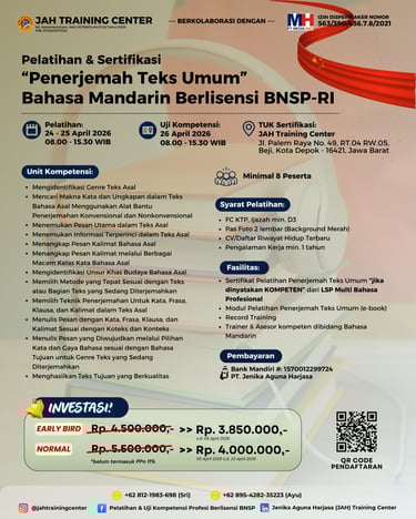 📚✨ Ikuti Pelatihan & Sertifikasi Profesi skema Penerjemah Teks Umum - Bahasa Mandarin berlisensi resmi dari BNSP RI.
