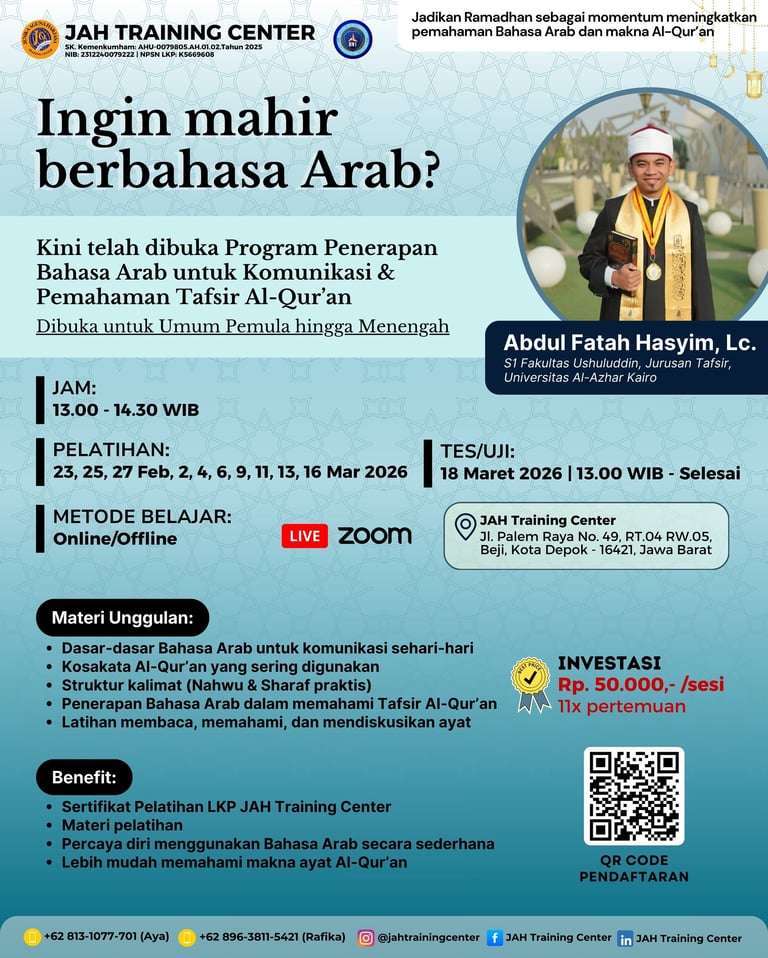 Manfaatkan momentum Ramadhan untuk memperdalam kemampuan Bahasa Arab Anda — tidak hanya untuk komunikasi sehari-hari, tetapi juga untuk memahami makna ayat Al-Qur’an dengan lebih baik dan benar.