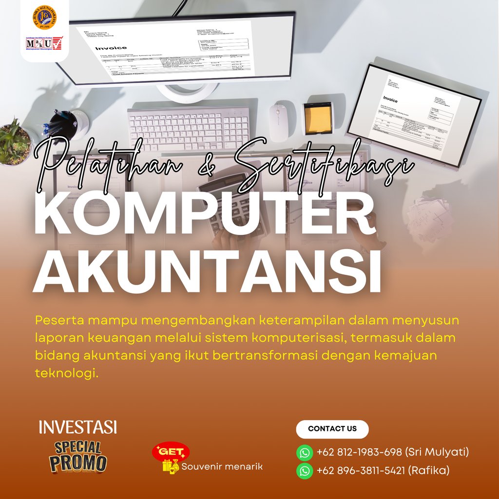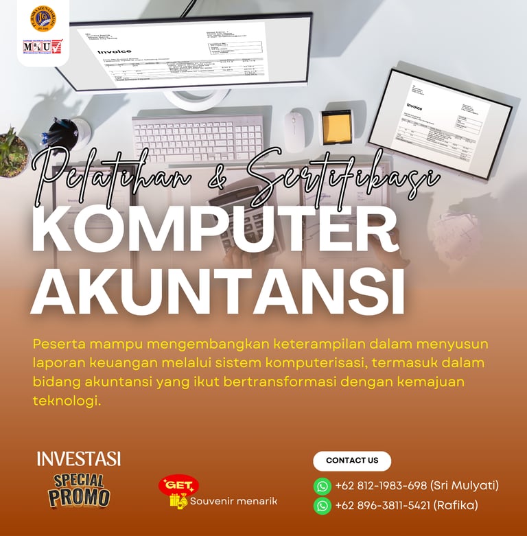 Pelatihan dan Sertifikasi Komputer Akuntansi adalah program pelatihan yang dirancang agar peserta mampu mengembangkan keterampilan dalam menyusun laporan keuangan melalui sistem komputerisasi, termasuk dalam bidang akuntansi yang ikut bertransformasi dengan kemajuan teknologi. Program ini juga memberikan sertifikasi dari Badan Nasional Sertifikasi Profesi (BNSP) sebagai bukti kompetensi peserta dalam skema Komputer Akuntansi.
