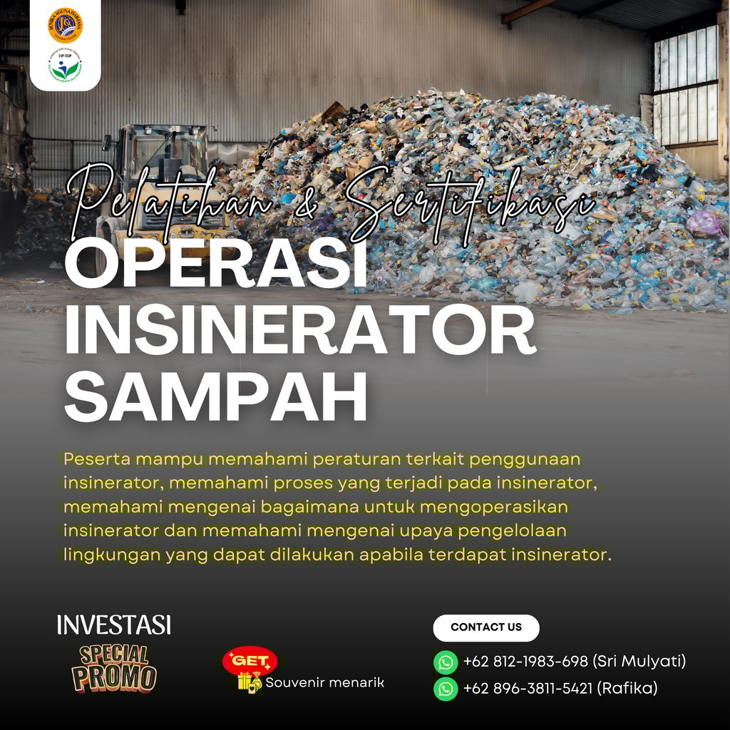 Pelatihan dan Sertifikasi Operasi Insinerator Sampah adalah program pelatihan yang dirancang agar peserta mampu memahami peraturan terkait penggunaan insinerator, memahami proses yang terjadi pada insinerator, memahami mengenai bagaimana untuk mengoperasikan insinerator dan memahami mengenai upaya pengelolaan lingkungan yang dapat dilakukan apabila terdapat insinerator. Program ini juga memberikan sertifikasi dari Badan Nasional Sertifikasi Profesi (BNSP) sebagai bukti kompetensi peserta dalam skema Operasi Insinerator Sampah.