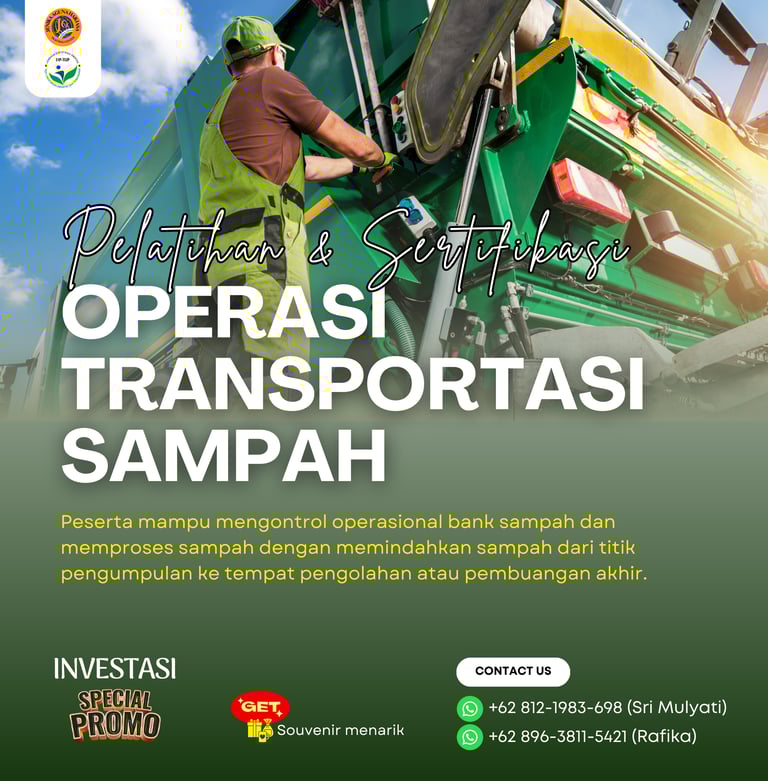 Pelatihan dan Sertifikasi Operasi Transportasi Sampah adalah program pelatihan yang dirancang agar peserta mampu mengontrol operasional bank sampah dan memproses sampah dengan memindahkan sampah dari titik pengumpulan ke tempat pengolahan atau pembuangan akhir. Program ini juga memberikan sertifikasi dari Badan Nasional Sertifikasi Profesi (BNSP) sebagai bukti kompetensi peserta dalam skema Operasi Transportasi Sampah.