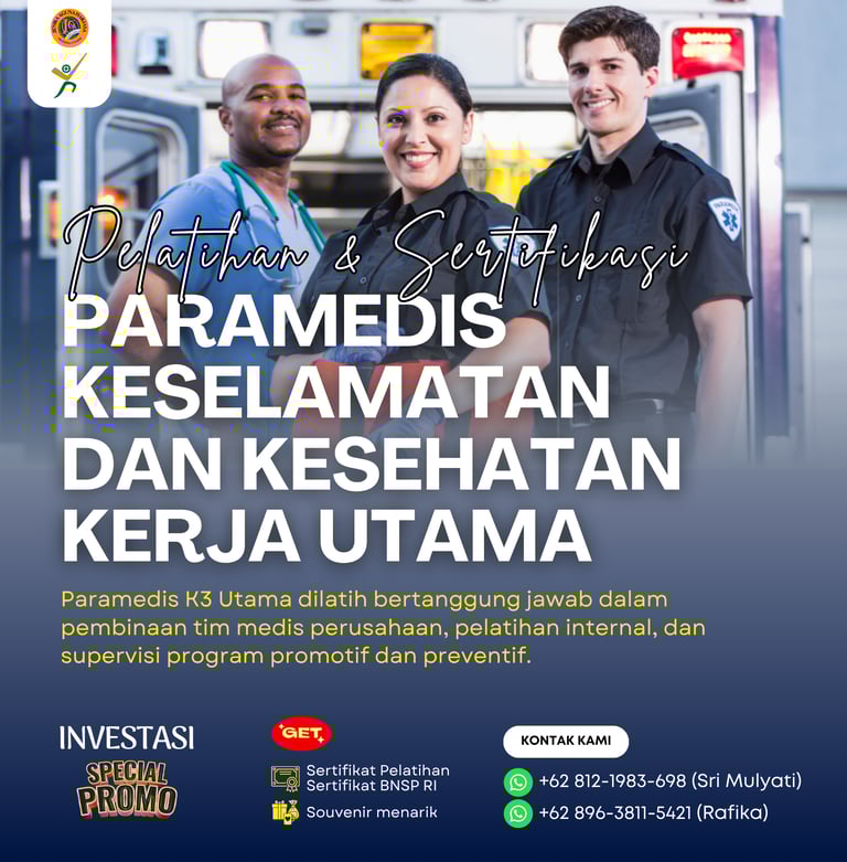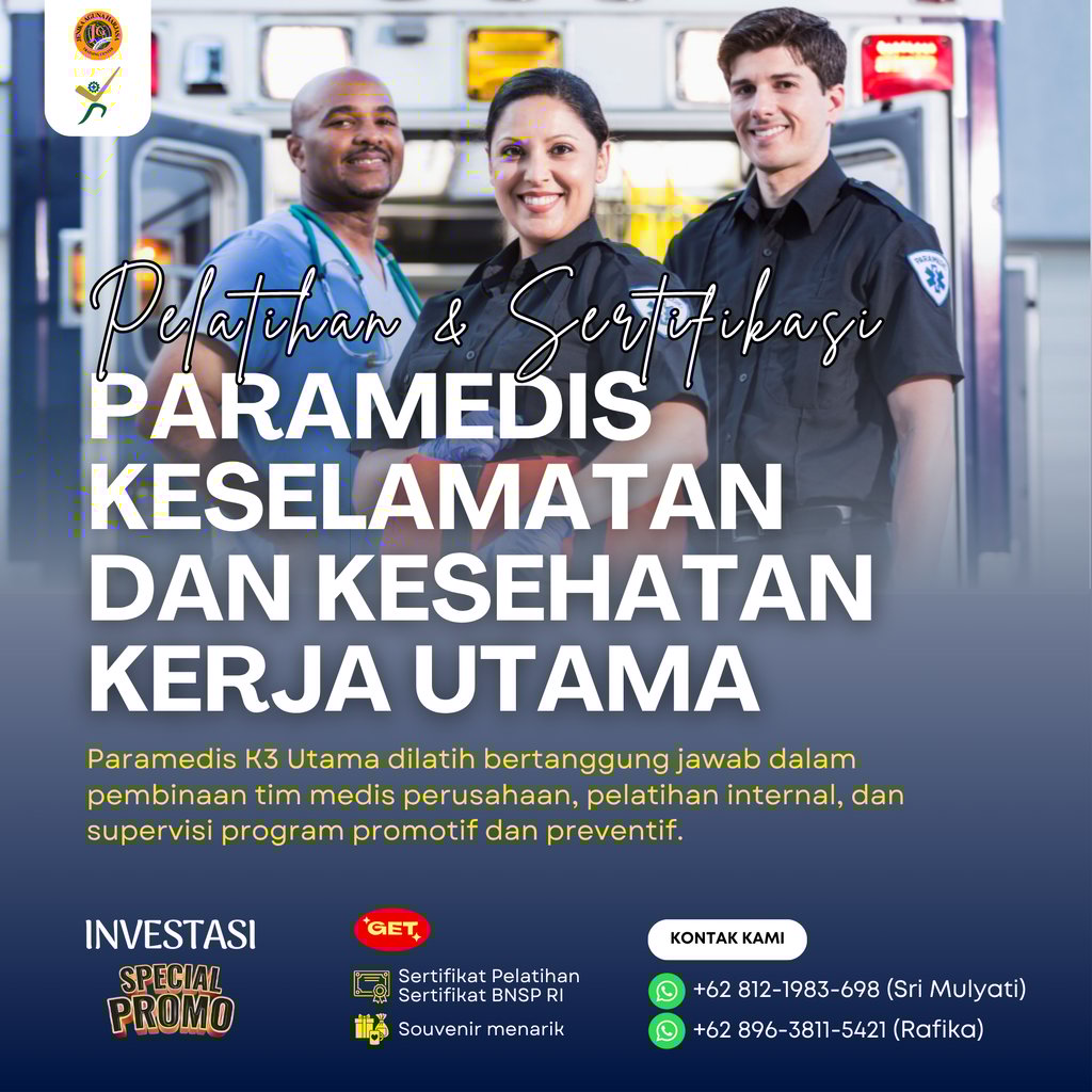 Pelatihan dan Sertifikasi Paramedis Keselamatan dan Kesehatan Kerja Utama adalah program pelatihan yang dirancang untuk membekali tenaga medis dengan kompetensi tertinggi di bidang pelayanan, pengelolaan, dan pengawasan sistem K3 di tempat kerja, termasuk kemampuan untuk mengembangkan kebijakan strategis, menganalisis data kesehatan kerja, dan menjadi pengambil keputusan dalam sistem manajemen K3. Program ini juga memberikan sertifikasi dari Badan Nasional Sertifikasi Profesi (BNSP) sebagai bukti kompetensi peserta dalam skema Paramedis Keselamatan dan Kesehatan Kerja Utama.