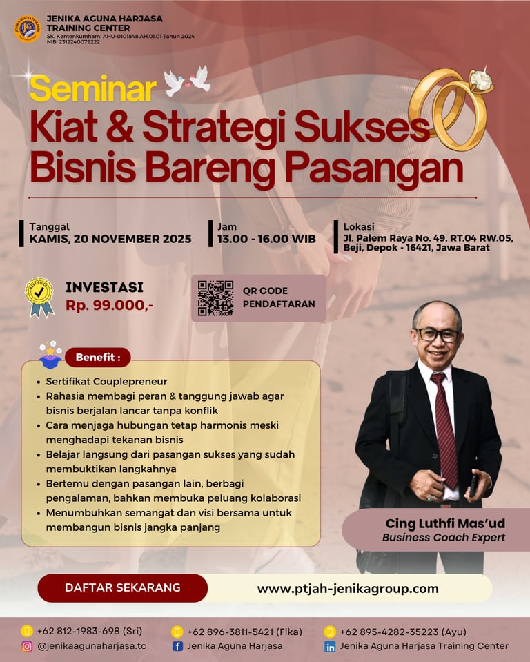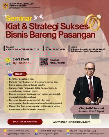Tujuannya? Biar kamu & pasangan bisa kompak, saling support, dan tahu strategi jitu membangun bisnis bareng tanpa drama 💑