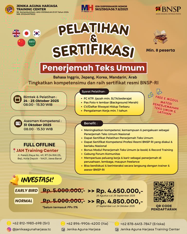 📚 Pelatihan & Sertifikasi Skema Penerjemah Teks Umum