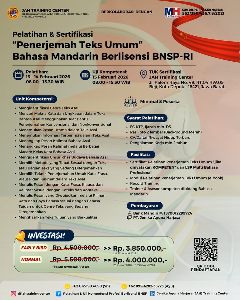 📚 Pelatihan & Sertifikasi Skema Penerjemah Teks Umum Bahasa Mandarin