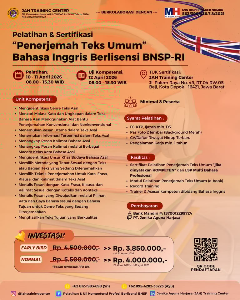 📚 Pelatihan & Sertifikasi Skema Penerjemah Teks Umum