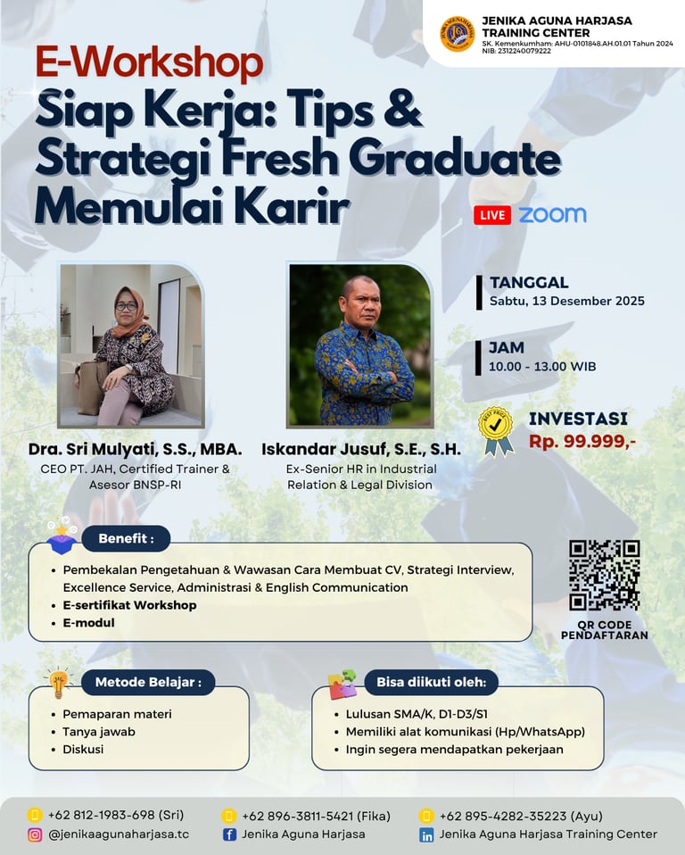 🎓 Baru lulus dan siap terjun ke dunia kerja? Jangan lewatkan kesempatan emas untuk mendapatkan pembekalan strategi terbaik dalam memulai karir profesional Anda!