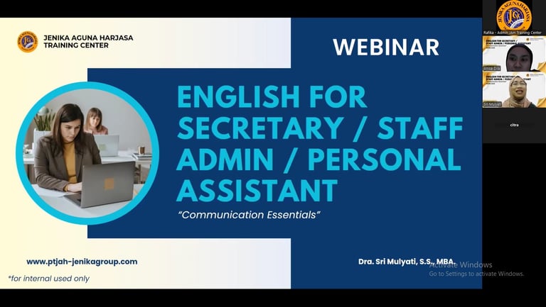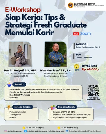 Pembicara: Dra. Sri Mulyati, S.S., MBA. (Certified Trainer & Asesor BNSP-RI)
