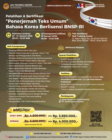 📚✨ Ikuti Pelatihan & Sertifikasi Profesi skema Penerjemah Teks Umum - Bahasa Korea berlisensi resmi dari BNSP RI.